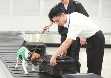陈海告诉记者,检疫犬嗅觉灵敏,反应机警,亲和力高,能提高对肉制品、水果、水产品等禁止入境的动植物产品的检出率,适合在口岸旅检现场使用。检疫犬的应用可以弥补传统人工查验和X光机透视检查的不足,一方面降低人工开包查验比例,加快通关;另一方面提高查验的准确率,防止境外有害生物传入。
