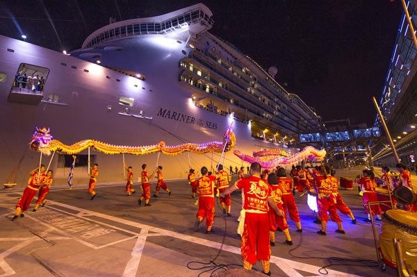 6月12日,香港启德邮轮码头迎来了总吨位达13.8万吨的皇家加勒比国际游轮公司海洋水手号停靠,标志着香港邮轮旅游迈入全新时代。香港旅游发展局特别举行仪式,并安排舞龙醒狮及鼓乐表演,欢迎三千多访港邮轮旅客。