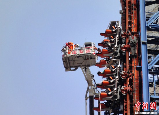 6月21日中午12点19分,武进太湖湾环球动漫嬉戏谷内,云之秘境过山车突然发生故障,成90度角悬垂在30多米高的轨道上。车上共有11名游客,都仰面朝天困在坐椅上无法动弹。截至下午16时53分,所有游客都被消防云梯车救下,初步检查暂无大碍。