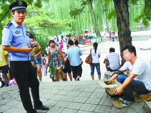 面对这种新情况,公园也采取了应变措施。经过与派出所商定,他们制定了一套教育备案方案:在园内非法摆摊的小贩将被带到派出所进行教育,教育的时间从被“请”进派出所开始,直到晚上闭园。教育的内容是说服和让小贩阅读相关法规结合。同时为被教育的小贩留下影像资料,以备园内职工辨认。