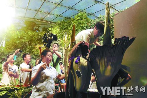 植物园的工作人员对巨魔芋进行部分科研工作,其中最重要的一项便是用前两天从“老大”身上取出的花粉为老二进行授粉,期望能让这个三胞胎巨魔芋结果,增加种子数量。
