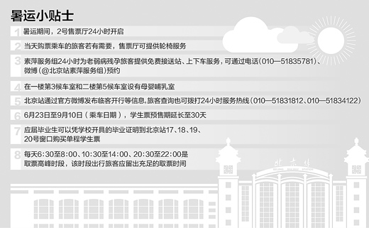7月1日是2013年暑运第一天。相比往年,今年的暑运客流有什么新特点,北京火车站应对暑运有没有新的举措,老弱病残孕等旅客如何寻求帮助?