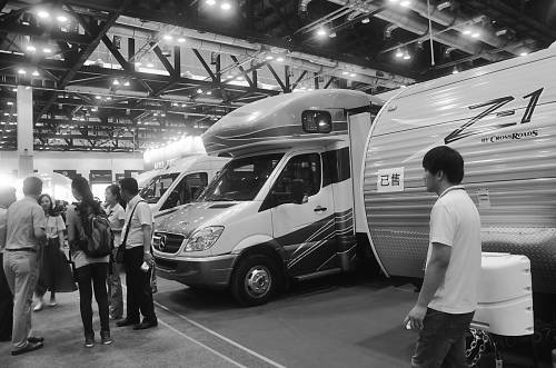 与往届相比,本届旅博会上的最大亮点当属户外房车展区。20余家户外房车、改装车参展商的几十辆房车引得众人竞相参观。展会开幕当天上午,多辆展品就挂出“已售”标牌。
