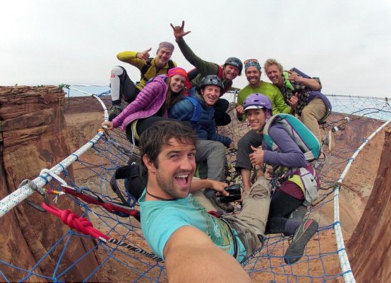 领队安迪·里维斯以及他的11个伙伴将“营地”布置得有模有样,四周吊起结实的绳索,中间是类似于吊床的大网,能够同时承载多人。他们在上面搭起帐篷,安迪甚至还同未婚妻一起在高空中度过了一整夜。此外,队员们还会进行走高架索和蹦极等惊险运动,每个人都有机会借助绳索装置随时滑离中心的大网,肆意体验腾空飞起或是朝下坠落。