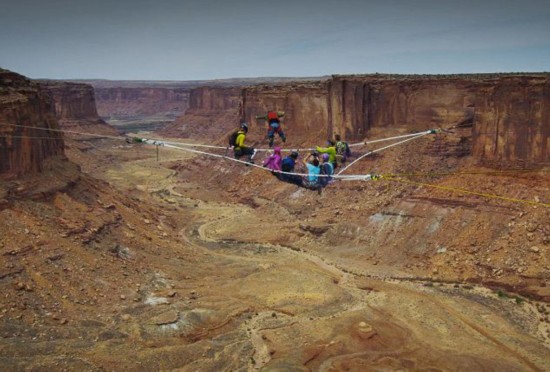 据英国《每日邮报》7月5日报道,在美国犹他州的莫阿布,一群勇敢的探险者在峡谷距离地面420英尺(约合128米)的空中拉绳架起一座属于他们的“空中营地”,体验刺激的高空露营生活。