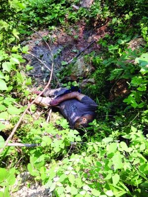 “找到了!”继续往上爬了二三十米后,民警在山沟中发现了一名男子,这名男子身子略微蜷缩着横躺在石块中间,已经没有了生命体征。