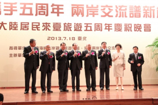 7月18日,开放大陆居民赴台旅游五周年纪念活动在台北圆山大饭店举行。中国国民党荣誉主席吴伯雄、海峡两岸旅游交流协会会长邵琪伟、台湾海峡两岸观光旅游协会会长谢谓君出席活动并致辞。据统计,自2008年7月18日大陆居民赴台旅游正式启动以来,大陆居民赴台旅游人数累计达620万人次,为台湾带去4800亿新台币直接收入。