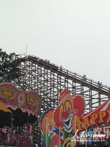 2013年7月21日下午1时30分许,上海欢乐谷的一个过山车突发故障,10余名游客被困半空中。过山车突然停在轨道上 。CFP