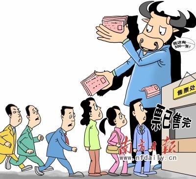 7月初,又有多名乘客投诉称,他们来自美国,在广州经商,一行五人要去香港处理一项紧急事务,来到广九直通车售票窗口时,发现当天早上到香港的车票全部没了,而且下午的返程车票也没有。就在他们叹气之际,几名男子大摇大摆拿着十几张早上8时多的车票走到他们跟前,报价每张650元。为了赶时间,这5名美国人也只得花高价购买“黄牛票”。