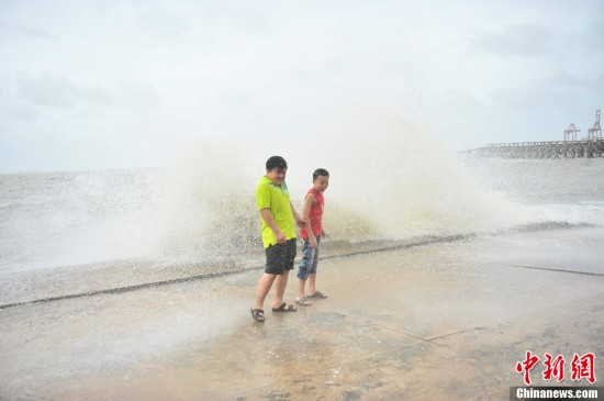 8月2日,游客海边戏浪。当日,今年第9号强热带风暴“飞燕”携狂风暴雨影响海南,其中心附近最大风力10级,风速达到28米每秒,7级大风范围半径300公里。目前海口市已出现6级以上大风,最大阵风9级,在海口西秀海岸海面掀起层层巨浪,拍打堤坝。气象部门预计,随着“飞燕”主体云系西移,雨量还将增大。中新社发 骆云飞 摄