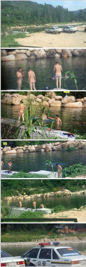 【声明】8月18日下午,有博友在微博爆料:鲁山景区有两辆警车停在河边,有人在河里洗澡。经初步调查,两辆警车系我局在景区执勤车辆。首先,我们感谢博友对我局公安工作和队伍建设的监督和支持。目前,我局正组织警务督察部门对此事进行调查,详细情况我们会在第一时间在微博上公布。