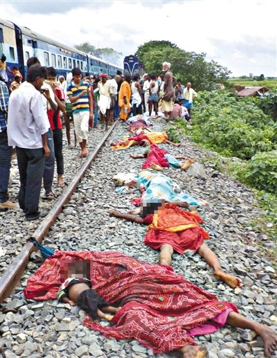 当地时间19日早上9点左右,一列从比哈尔邦瑟赫尔萨市开往首府巴特那的快速列车,像往常一样经过一个小镇——马拉卡德镇的车站。因为站小,火车在这一站并不停,在得到车站可以通过的指示后,火车快速地驶进小站,然而,就在此时,一群妇孺,突然出现在火车的前方。虽然司机马上采取制动措施,但为时已晚……