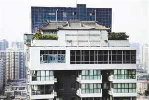 这位工作人员称该小区1号楼顶部有设备用房、水箱等大楼本身的必备设施,同时证实顶层仿古建筑属于加建:“搭建的这部分是违章建筑,这是毫无疑问的。”