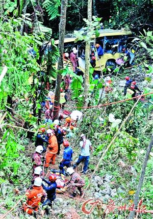 当地时间8月21日下午,一辆载有53名乘客的旅游大巴在从马来西亚云顶高原返回首都吉隆坡的途中失控坠入60多米深的山谷。