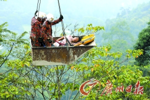 21日,救援人员在云顶高原的事故现场转移伤员。