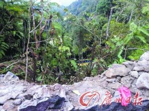 21日,救援人员在大巴坠落的山谷里抢救乘客。