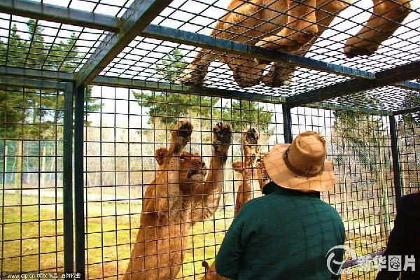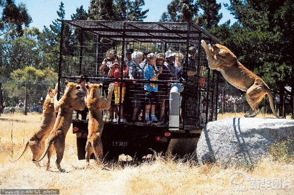 2013年8月27日消息(具体拍摄时间不详),新西兰克赖斯特彻奇,几只狮子好奇的围在笼子四周查看。新西兰野生动物园突发奇想,将传统的“人看动物”进行大逆转,让游客钻进笼子,欣赏动物们的同时也为这些野生动物们带来的全新的体验。
