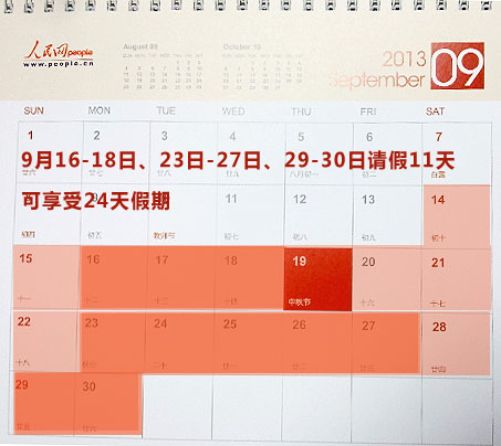 中秋节拼假方案:请3天休8天