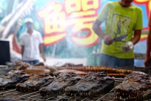 2013年09月05日,广西壮族自治区南宁市,在美食节里,出现了被称为“富有东南亚风情”生烤鳄鱼的火爆场面。被作为美食出售的烤鳄鱼,商家宣扬有滋补作用,每份售价为50元。过往食客,有人解囊购买,有人则表示场面恐怖,不敢轻尝。