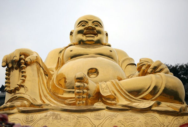 坐落在丰台千灵山顶金灿灿、笑哈哈的弥勒大佛最近很“受伤”。一些游人叩拜祈福之余,攀爬到几米高的佛像上,在弥勒佛裙裾,甚至大肚子上刻字。