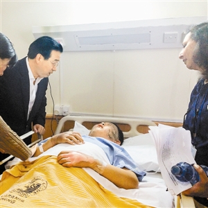 中国驻肯尼亚大使刘光源(左一)22日看望中国籍伤员。新华社
