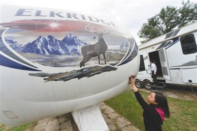 昨天,北京国际露营公园工作人员在整理房车。
