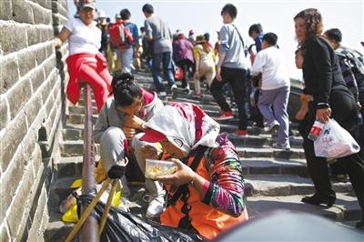 自2007年开始在长城进行清洁工作,高俊经历了6个十一黄金周。今年,高俊更是带着自己还在上高一的女儿上长城帮忙。