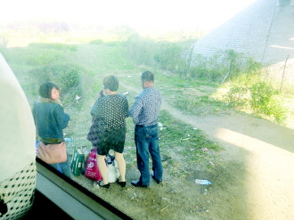 在高速公路上被卸下的乘客。张昊摄
