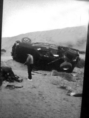 “刚开始玩得非常刺激,沙漠的风情加上越野车的速度,让我感觉非常好。”不过其中两辆越野车总是出点小毛病,不得不停下来维修一下,这让马冰心里产生了一丝不安。“由于车况不佳,原定下午4点钟开出沙漠的计划,被耽搁了近两个小时。”马冰觉得可能是耽误的时间太久,其中一辆丰田4500越野车的司机小额有点开始赶,拼命地加速超车。