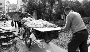 在铁路口西边大概三百米的距离就是雨花路人行过街天桥,不过由于此桥年久失修,在今年7月初的时候被封桥整修。王先生说,这样一来通过路口的人变得越来越多,随之,行人的安全隐患越来越大。