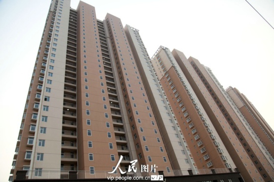 2013年10月23日,青岛,“宜昌美景”小区立面外墙上装饰性外窗涂饰远景。