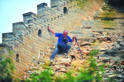 北青报记者看到,由于年久失修,长城上很多地方已经长满杂草,以前甬道上的砖石已经风化破裂甚至松动,要爬上一些地势险要的烽火台大多需要手脚并用,甚至需要借力从山坡上自然生长出来的岩石。如果一不小心踩到松动的砖石上,极易发生危险。