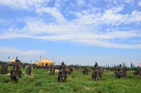 置身铁马金帐群雕中,他们的表情威严肃穆,气势威武雄壮,385尊雕像让我们回望到了十三世纪,成吉思汗大军出征的浩大场面,也是这般神勇和威猛吧。