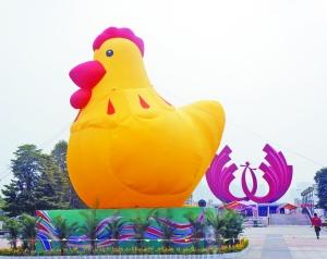 昨日,记者看到这只10余米高的大黄鸡“站立”在广场中央,胖嘟嘟的样子甚是招人喜爱。这只大黄鸡是组委会为配合清远鸡美食节特别定制的,它以清远鸡为原型,通过艺术加工并卡通化设计。设计人员还特意对这只卡通鸡“增肥”,胖嘟嘟的大黄鸡显得更招人喜欢。此外,因为清远鸡一般是母鸡肉更好吃,所以大黄鸡被设计成了一位“公主”。
