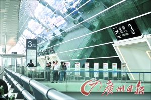 与深圳机场老航站楼不同,新航站楼的出发厅门口,已分别安排了公交车、出租车和社会车辆的下客点,旅客无论采取哪种方式到机场,都能直接到达地面4楼的出发厅,几分钟步行后前往值机区。若是与记者一样乘坐机场大巴到机场的旅客,则可穿过地面交通中心步行几分钟到达T3航站楼后,乘电梯向上至地面4层再往值机区。