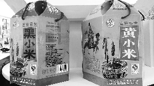 其中,一种自称“宫廷贡米”的黑小米,包装上煞有介事地讲了这么一段故事:相传乾隆皇帝有一天偕文武大臣到京郊巡视龙脉,不觉已是正午,乾隆腹中空荡,饥饿难当,碍于山中偏僻,无处饮食,只得拔足前行。忽见农家小院种着青黑色的谷子,万分欣喜,于是点名要吃。原先名不见经传的黑谷子,打这儿起就成了御用贡品,流传至今。