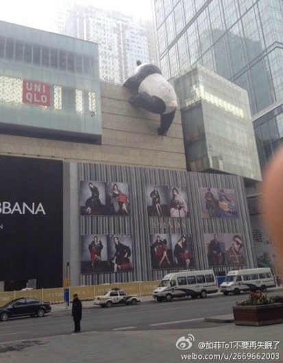 据悉,这只巨型“熊猫”是由国际著名设计师——Lawrence Argent专为成都创作的,它高达15米、重达13吨,其撅着大屁股爬墙的姿势瞬间萌倒在场的成都市民。