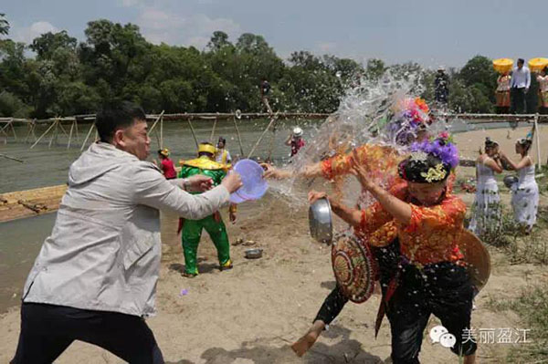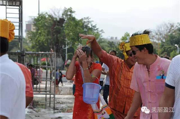 盈江县地处云南省德宏傣族景颇族自治州西北部,与缅甸接壤,是久负盛名的“中华翡翠毛料城”和“中国坚果之乡”。4月9日,由盈江县委、县政府主办的2015年盈江县泼水节盛大开幕,盈江迎来一个全民参与的泼水狂欢,城里举行采花、嘎秧联欢、山歌对唱、竖“赏剑”、象脚鼓、祈福、傣族民间艺术表演等一连串民族特色活动。 泼水节期间,盈江县委宣传部长周湛禄介绍,盈江县以傣族、景颇族、傈僳族三大主体民族为主,泼水节是全民参与的重大节日,将持续两到三天,今年大概有10万人参与其中,主要参与者还是当地人,外地人很少,希望通过宣传有更多的外地人能够来盈江泼水狂欢。周表示:“希望盈江的旅游能够点对点针对像重庆这样的大城市宣传推介,把盈江推广出去。”
