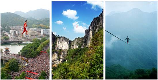 据了解,猫儿山位于广西桂林市的北部,是国家级自然保护区,因峰顶形似俯卧着的巨猫,故名猫儿山。猫儿山海拔2141.5米,是著名的漓江的发源地,红军长征时期翻越的第一座大山,毛泽东曾经这样来形容猫儿山的险,“山,快马加鞭未下鞍。惊回首,离天三尺三。”据说,猫儿山是二战援华美军飞机都未能飞过的地方。阿迪力这次挑战华南之巅猫儿山无论其挑战难度,还是惊险程度都在国内首屈一指,相信阿迪力精彩的高空表演会给您一个惊心动魄的视觉盛宴 。
