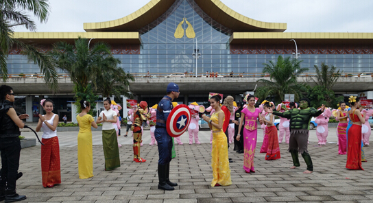 上周,来自美国西海岸的绿巨人、猫女、雷神等超级英雄战队现身昆明机场并遭遇傣族美女的斗舞阻击,首番战未能告捷,超级英雄们只能继而乘机前往版纳以图再战。翌日,西双版纳万达主题乐园又传出消息:在昆明遭遇到首波“阻击”后,以往不可一世的超级英雄们在26日打响的救急战中可能要“撒泼”!