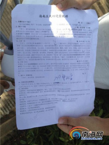 张先生提供的旅行社第二份行程(南海网见习记者 王旭摄)