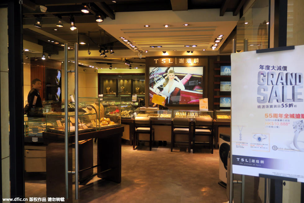 香港铜锣湾,一黄金珠宝店颇为冷清。