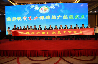 10月14日,沈阳、长春、哈尔滨、大连、鞍山、抚顺、锦州、营口、盘锦、吉林、辽源、延边、松原、长白山、大庆、齐齐哈尔、大兴安岭等17个城市和地区在北京举办“东北旅游推广联盟成立大会”,各城市代表共同签署“东北旅游推广联盟北京宣言”,推进东北旅游在更大范围、更高层次上的交流与合作。
