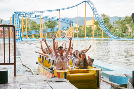 进入陆乐园,这里有惊险刺激的项目等你挑战,在丛林冒险区挑战极限。这里汇聚了雨林飞鹰、丛林劲舞、双雄展翅、彩虹之巅等多个精彩刺激的大型设备。尤其要介绍的是作为世界上独特的“心”形轨道过山车“雨林飞鹰”,轨道全长885米,高度落差达40米,运行过程中,游客以俯卧姿势吊挂在列车下方,列车悬挂在轨道下,进行360度的“爱心”回转,尽享属于年轻人的浪漫与刺激。除此以外,还可以在渔人码头畅享“水”趣。明星项目“澜沧飞渡”在过山车运行时,伴随着高速前进的能量,车厢将迅速切换至“击水模式”,以将近80公里的时速冲入水中,巨浪飞天而起,蔚为壮观。亦可在茶马古道中接受刺激与历史的洗礼,这里的明星设备“望天巨树”, 高达56.4米,运行时以接近4G的加速度将运载仓向上弹出,几乎在一瞬间到达塔顶,上下运动极具挑战与刺激,是证明勇气的不二之选。