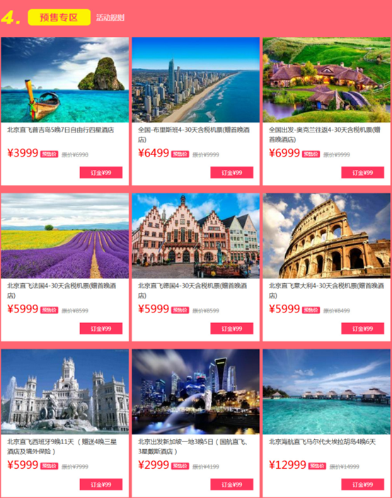 此次周年庆活动,凯撒度假旗下自由行、小旅行、城际游等产品均悉数参与,覆盖面也极为广泛,包括欧美、大洋洲、马尔代夫、巴厘岛、普吉岛、韩国、日本、新西兰、新加坡、毛里求斯等热门旅行胜地均列其中。