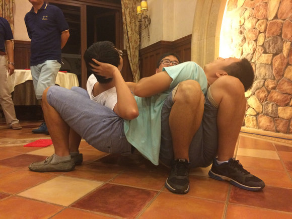 经过下午的游戏互动,来自不同单位的媒体朋友迅速熟悉起来,建立了朋友关系。所以晚间的“你来比划我来猜”和“指压板站人”比赛异常激烈。为了赢得一呆准备的丰富礼品,小伙伴们都拼了,结合三角原理PK对方小组,用智慧和毅力赢得了比赛!