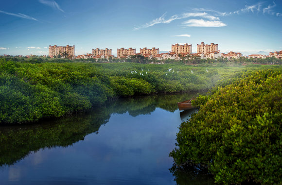 富力红树湾位于海口西世界长寿之乡——澄迈,占地面积8000亩,相连双海湾,项目范围内拥有2200亩全球珍稀红树林湿地,定位为世界级养生度假标杆大盘,为上市地产集团富力地产海南旗舰项目。