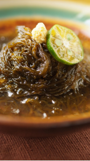 海藻是琉球料理的常用食材,让人戒不掉的养生海产。柔软的身体,拥有独特的粘滑口感与清爽味道。