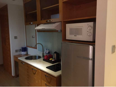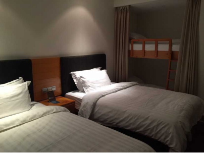 我们这次选择的是高级间,房间内有两张单人床,还包括了一个上下床,至少可以同时入住四个人,特别适合我们这种结伴同行的小伙伴或者是带着小孩子的家庭。另外还有一个简易厨房,可以在这里做一些简单的小吃和宵夜。