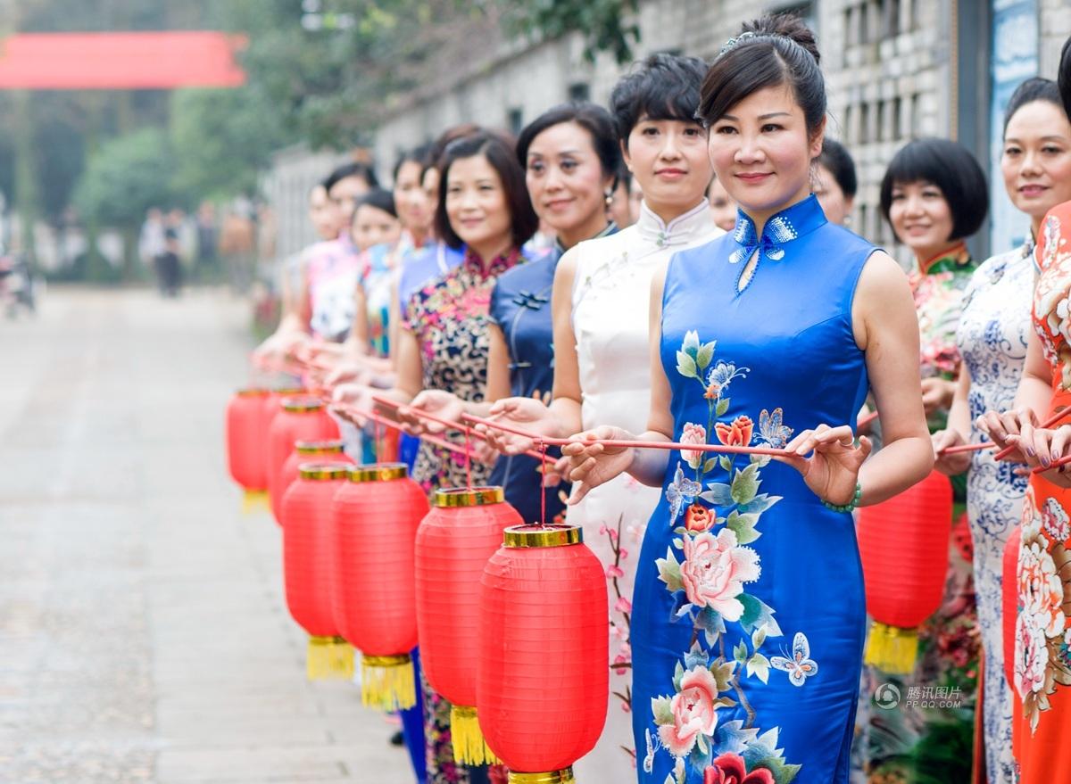 20多名女干部身着旗袍,为古村旅游“站台”。